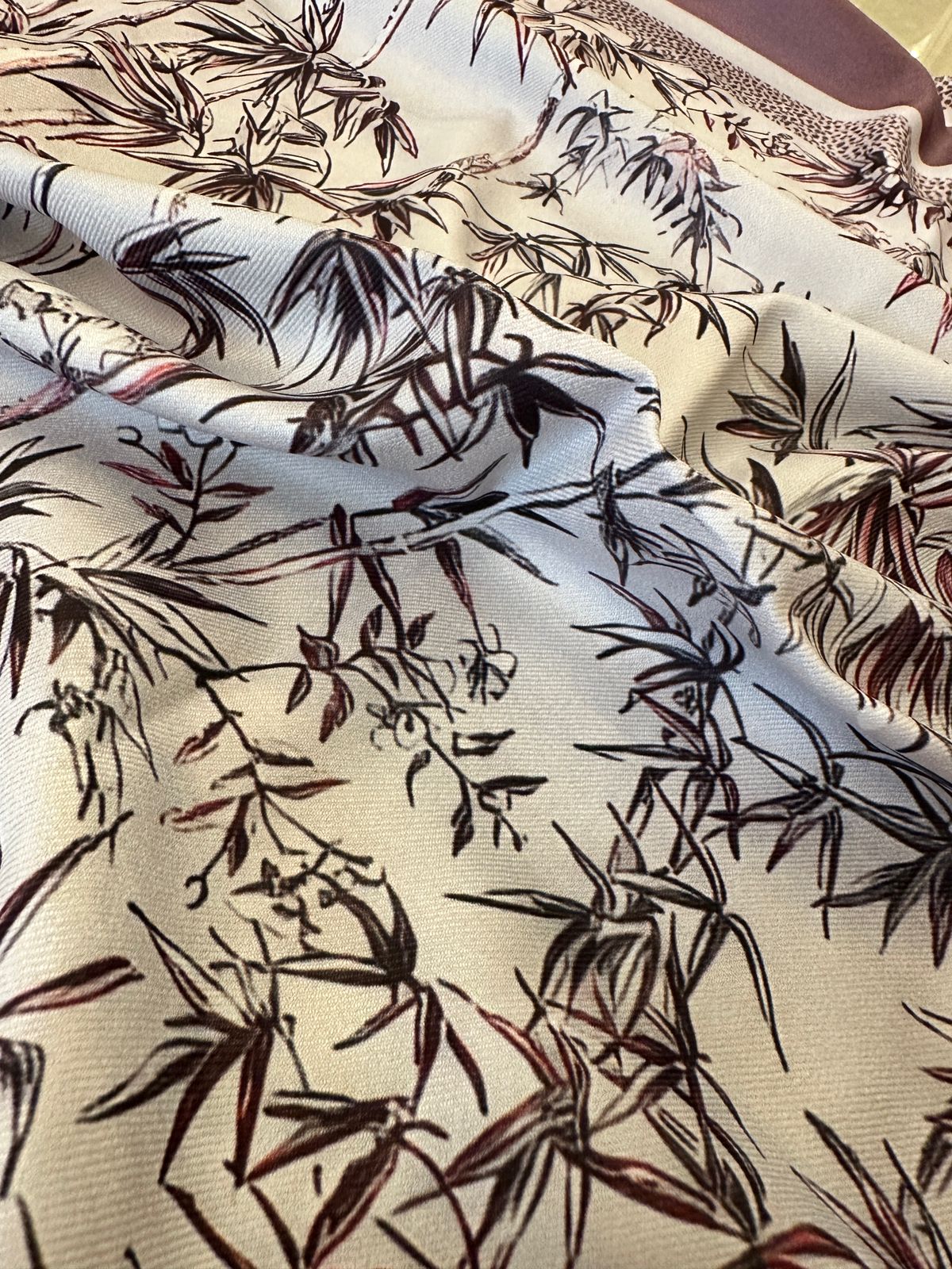 The soft burgundy hue and bamboo motif bring a refined, autumnal feel to your look — versatile, elegant, and eternally chic.
