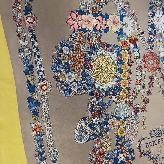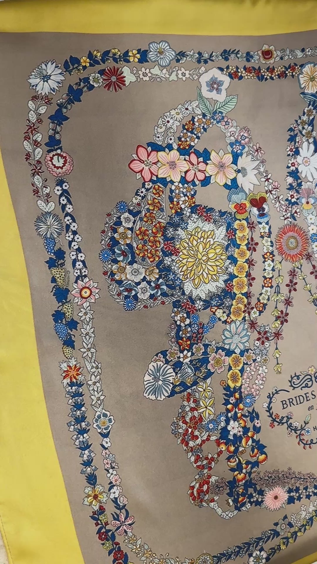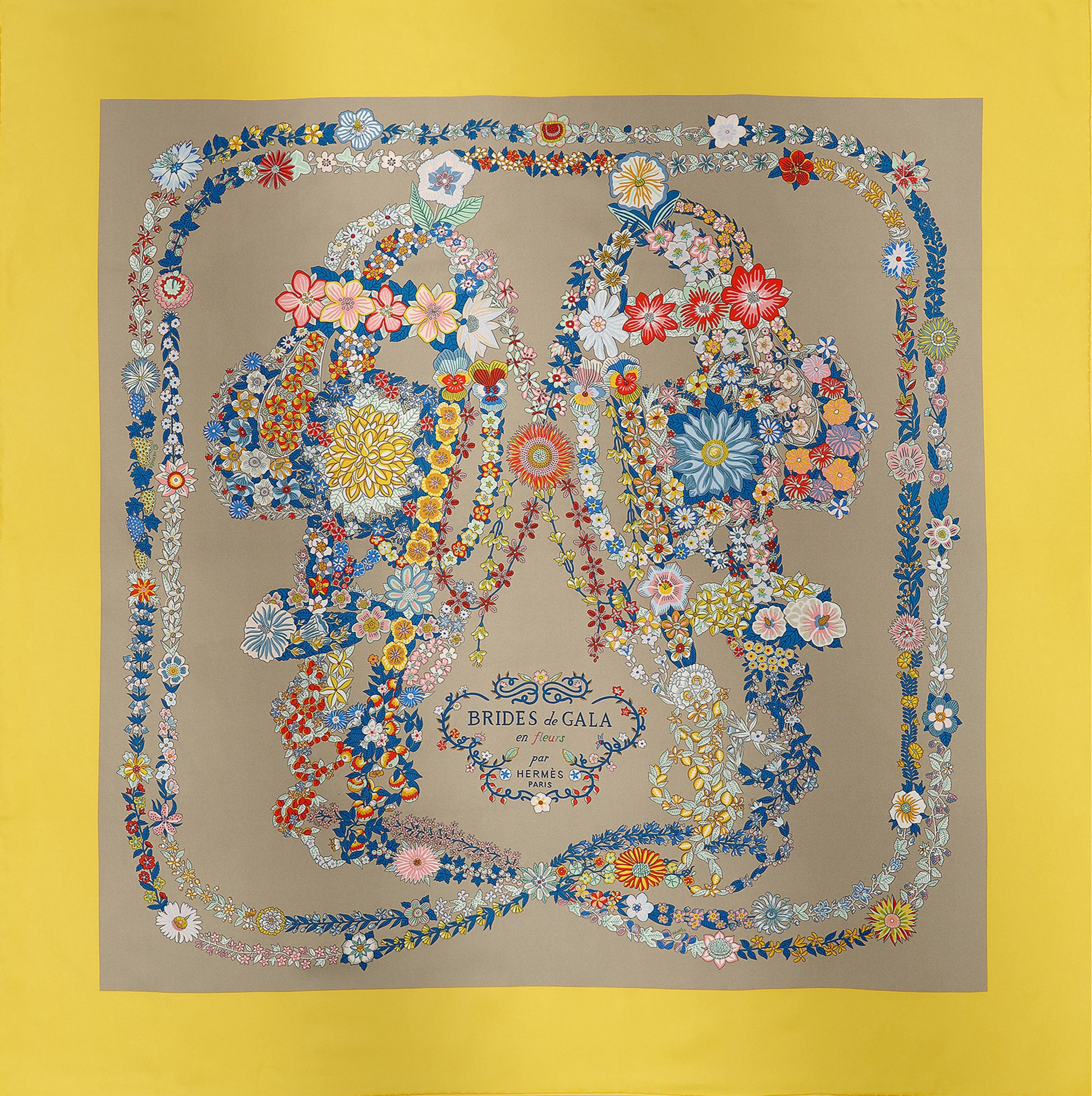 Hermès Colorful floral reins in a cheerful yellow frame. A soft mix of elegance and joy.