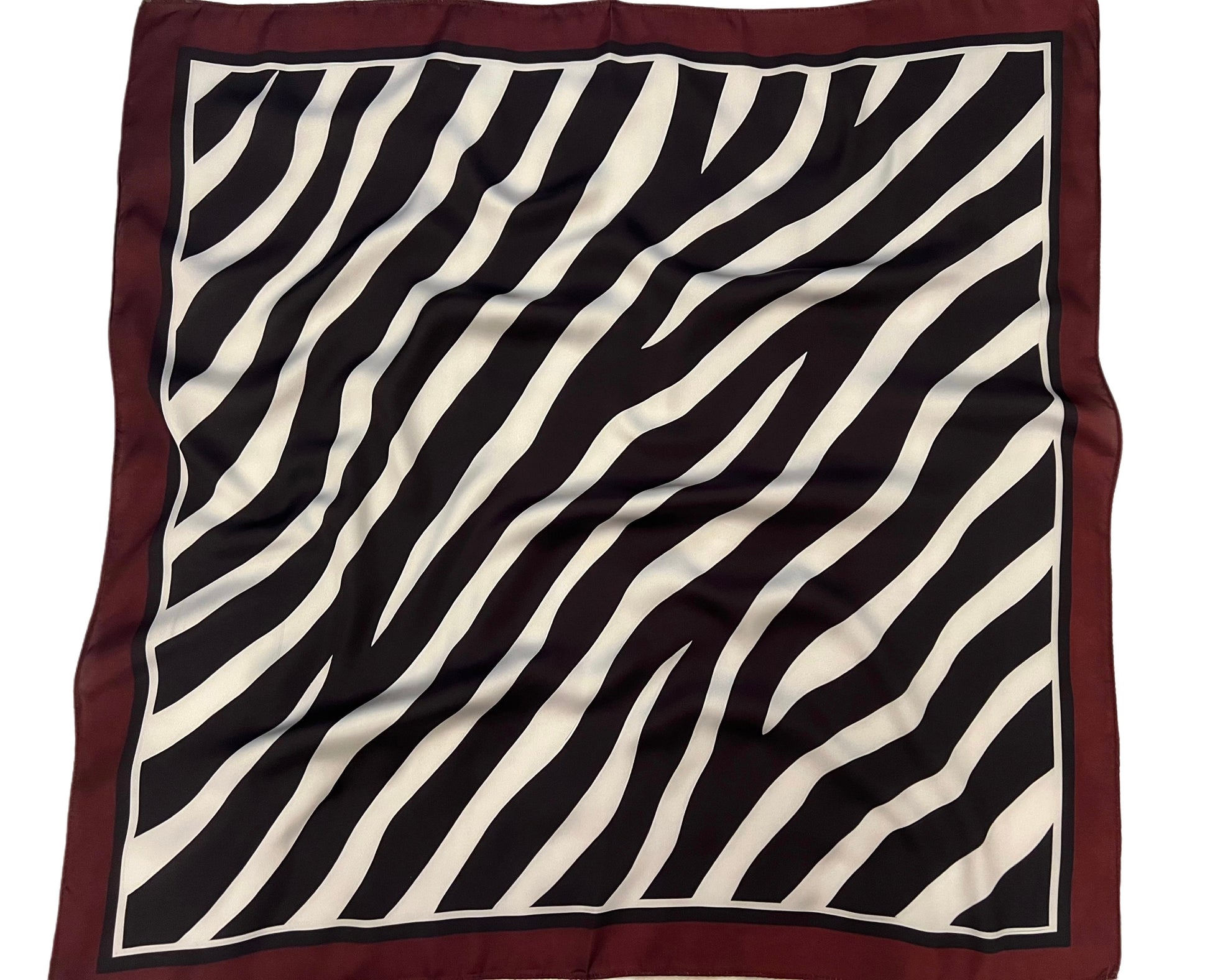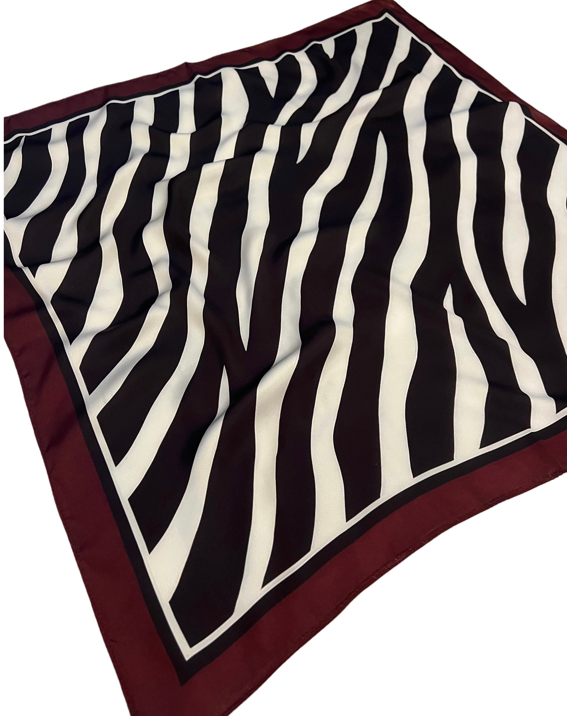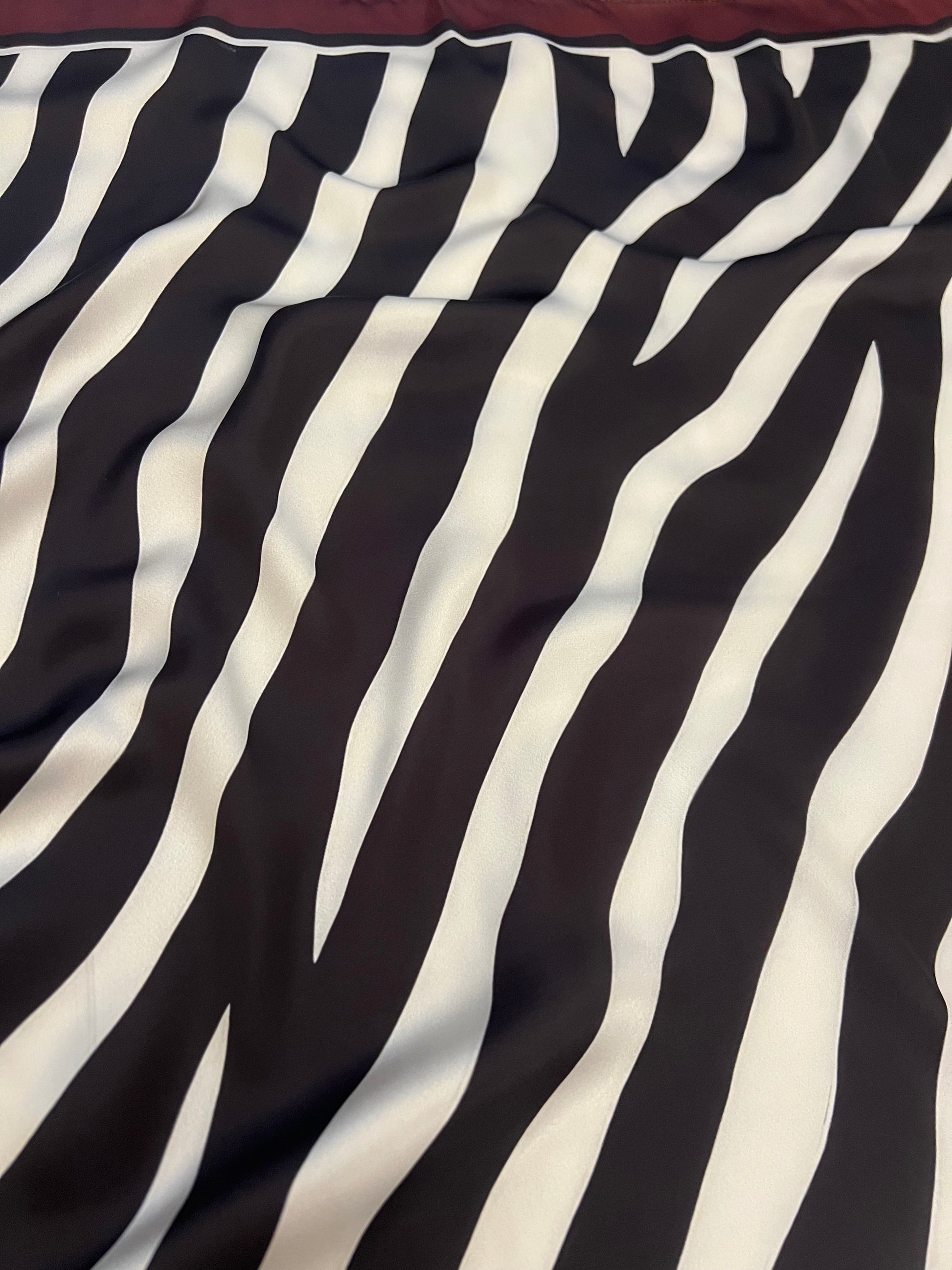 A bold statement piece featuring a captivating zebra motif framed by a rich burgundy border — blending contemporary allure with classic elegance.